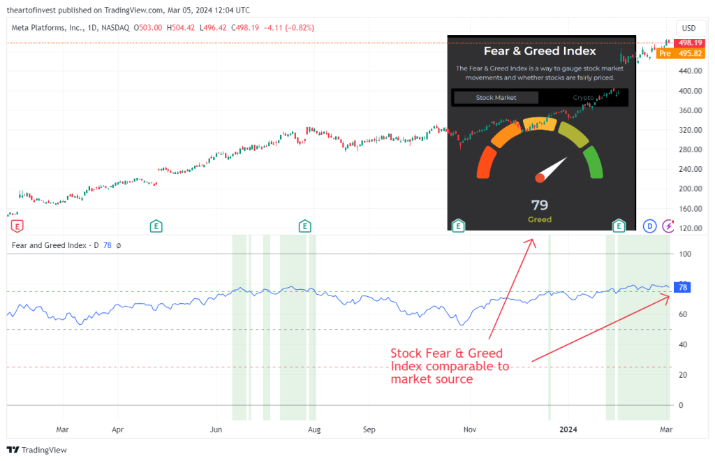 - 100 分表示极度贪婪,说明市场动量和股票价格远高于历史平均水平。